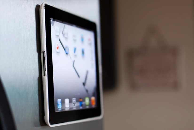 That day, she decided to make hot fudge sauce, and she spilled the evaporated milk. And her husband didn’t mind one bit– because the iPad didn’t feel a drop of the stuff from its magnetic perch on the side of the refrigerator. She stuck it on the side of the microwave and turned on Netflix so her daughter could watch Dinosaur Train easily from the kitchen table while the evaporated milk mess was mopped up.