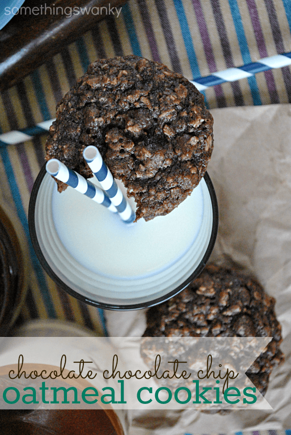 Chocolate Chocolate Chip Oatmeal Cookies Recipe posted by Staff Writer Pin Share Tweet Email Jump to Recipe Today, my daughter learned the meaning of the word, “Mooooooommmmm!” She’s been saying “mom” for a while, but not like this. Today, she learned that when she says it, I come. Of course, today, I still think it’s cute. I’m aware that the novelty of it will soon wear off (probably by tomorrow). But tonight, I still it’s utterly heart melting. I’m still amazed anytime she says anything and understands the meaning behind it. So to grasp the concept of a word that means ME? Pretty fabulous. So that was our game today. It went something like this: “Mom? Mom? Mom? Mom? Mom? Mooommmmmmmmm?” “Yes?” “Shoe on.” “Okay.” I leave the room. “Mom? Mom? Mom? Mom? Mom? Mom? Mom? Mom? Mom?” “Yes?” “Dress on.” “Ok. Yes, Belle looks very pretty in her dress.” I leave the room. “Mommmmmmmmmmmmmmmmmmm?” “Yes?” “Shoe off.” “Ok.” It was a nice part of my day. A little more physically active than I typically like to be (with all the ups and downs), but still nice to have that interaction with her 🙂 . Ok, so these cookies, right? Let me put into words how incredible these are: they were meant to go elsewhere as a guest post. But I took one bite and knew they would have to stay here. Frankly, I can’t even bring myself to bake the rest of the dough, because I turn into Cookie Monster the moment these come out of the oven. Anyway. I hope you guys love these as much as we did over here!! Continue to Content Chocolate Chocolate Chip Oatmeal Cookies Print Ingredients 1/2 cup butter, softened 1/2 cup shortening 1 cup brown sugar 1/2 cup granulated sugar 2 eggs 1/2 tsp baking soda 1 tsp sea salt 1 tsp vanilla 1/4 cup cocoa powder 1 1/2 cups all purpose flour 1 cup old fashioned oats 2 cups semi-sweet chocolate chips Instructions In a stand mixer, beat together the butter and the shortening. Add the brown sugar and granulated sugar, beat until creamy. Add the eggs, one at a time and mixing in between each addition. Add the sea salt and the vanilla. Mix well. Mix in the cocoa powder, flour, oats, and baking soda until dough forms, but don't over mix. Add the chocolate chips and mix. Scoop onto a parchment or silicon lined baking sheet by rounded tablespoons. Bake at 375 degrees for 10-14 minutes, until edges are set and a toothpick inserted comes out clean.