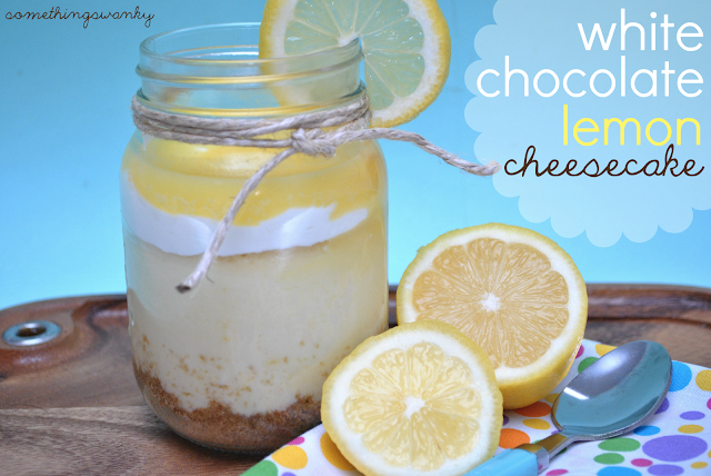 Lemon White Chocolate Cheesecakes & “Desserts In Jars” Review posted by Staff Writer Pin Share Tweet Email Lemon White Chocolate Cheesecake in Jars! Desserts in a jar are totally up my alley! This is a yummy, just-right blend of flavors. Not long ago, I was contacted and asked to test drive Shaina Olmanson’s new book, “Desserts in Jars.” And I thought, “Desserts? in a Jar?? That’s not me at all!” And then my pants caught fire. And my nose grew about 5 inches. Because I was LYING! Desserts in a jar are totally up my alley! 🍋🍋🍋 Celebrate LEMONS with us in this roundup of our best LEMON DESSERTS! 🍋🍋🍋 Obviously I love desserts. A lot. But jars are kind of my other main squeeze in life. If I could live in a jar… well, I just might. (OMG, how cute would a Mason jar house be??) Anyway. What I’m saying is: I was thrilled to review this book! Thrilled, and I must add, pleasantly surprised. I sort of expected a lot of recipes consisting of food that you have to make outside of the jar and then have to insert inside the jar. But there are tons of perfectly portioned recipes that are just right for baking/cooking/other-kinds-of-concocting right inside the jar! And I really {puffy} heart that. And speaking of puffy hearting (yeah, I just made that a verb) things– I big time puffy heart this Lemon Cheesecake recipe from Shaina’s book! And you will too! So make it! And buy the book!!! Lemon White Chocolate Cheesecake in Jars Recipe adapted from: Shaina Olmanson’s “Desserts in Jars” 6029050 Ingredients: Crust: 1 1/2 c. crushed graham crackers (about 9 sheets) 1/8 c. sugar 3 Tbsp. butter, melted Cheesecake: 7 oz. White Chocolate 1/2 c. Heavy Whipping Cream 2 – 8oz. packages Philadelphia Indulgences White Chocolate Cream Cheese, room temperature 1 – 8 oz. package cream cheese, room temperature 3/4 c. Sugar 4 Large Eggs Grated Zest of 1 Lemon 1/2 tsp. Vanilla Extract 1/2 tsp. Lemon Extract Pinch of Salt Topping: 4 Tbsp. Sour Cream 1/2 c. Lemon Juice 1/2 c. Sugar 4 Tbsp. Butter 1 Egg Instructions: Preheat oven to 325º Grease 4 standard sized jars. Crush the graham crackers in a ziptop bag. Add the butter and sugar. Microwave for 30 seconds. “Smush” everything together in the bag until fully incorporated. Divide the crust evenly among the jars and press into the bottom. Heat the cream in a saucepan over medium heat until just boiling. Remove from heat and add the white chocolate. Mix until melted and smooth. Set aside. In a stand mixer using a the whisk attachment: whisk together the cream cheeses until smooth, about 3 minutes. Beat in the sugar. Add the white chocolate and cream mixture. Mix well. Add remaining ingredients and mix well. Divide batter among the 4 mason jars, leaving about 1/2″ of space at the top. Line a 9×13 baking dish with a kitchen towel. Place the jars inside the pan with at least 2″ of space in between each. Pour hot water into the pan about halfway up the jars. Place dish in the oven and bake for 35 minutes. Turn oven off and let cheesecakes continue to cook in the oven. Remove from oven when mostly cooled (I waited about an hour). Place in refrigerator to chill. Meanwhile, whisk together the lemon juice, egg, and sugar in a microwave safe bowl. Microwave for 5 minutes, stopping to whisk after each minute. Curd should be smooth and thick when done. Pour curd into a ziptop bag and chill in an ice bath. When cheesecakes are chilled to liking, top each with 1 tbsp. sour cream, and divide the curd evenly among the jars (you may not use all of it).