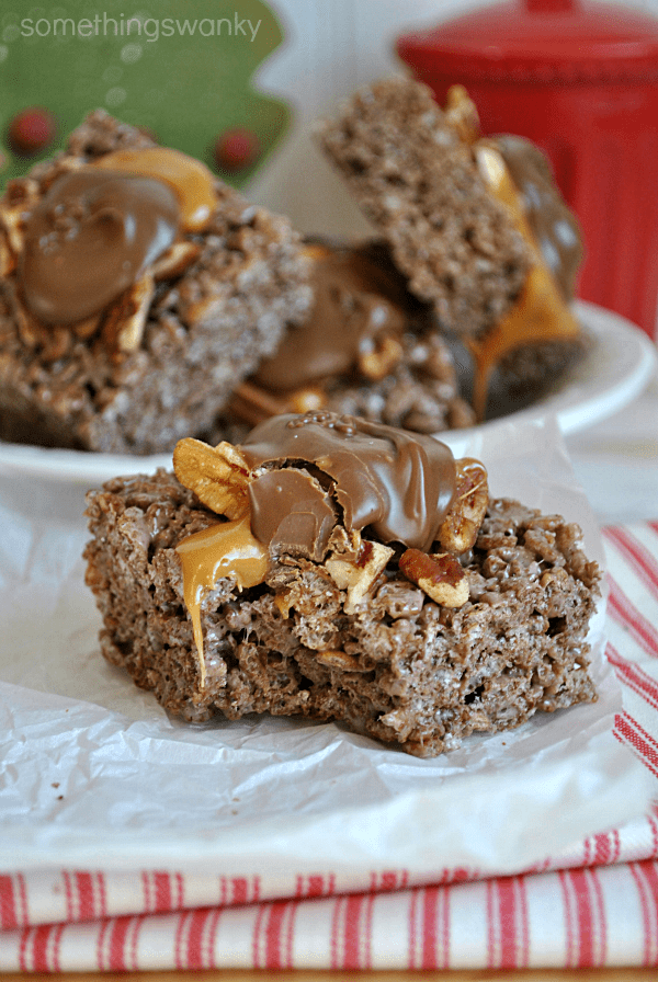 Turtle Rice Krispies Treats Recipe posted by Staff Writer Pin Share Tweet Email Jump to Recipe As so many other bloggers have done (and are doing throughout this week) I took a “moment” of silence over the weekend in respect for the victims of the Sandy Hook shooting and the Newtown community. And now it feels so strange, foreign even, to be sitting here, staring at my picture of rice krispies treats, and wondering what I can say… Wondering how I could ever possibly segue from something to wretched to dessert. How am I supposed to pick right back up where I left off in the wake of an event so tragic? It’s hard to imagine returning to my life of recipes, photography, and Pinterest when there are so many others who will never return to the lives they had before last Friday. For one reason or another, I felt like this tragedy touched me personally. In reality, it didn’t. I don’t know know anyone who attends the school, and I’ve never met any of the victims or their families. But I do believe there is some amount of grief accompanying this event that we are each entitled to feel. Whether you feel it as the mother of your own young child or simply as a member of the human race, it’s okay to feel sorrow for these people we may not know. I guess I’m saying this, because it was a difficult realization for me to come to– that it was okay for me to really feel sorrow and grief for a tragedy not borne by me. But, in the end, I decided that having those feelings is what makes human beings so special. We can have compassion for people we’ve never met. We can have a desire to lighten their load, to carry their grief alongside of them. And that’s pretty wonderful, I think. And something that should be encouraged. And, frankly, there is no proper way to segue into Rice Krispies Treats. But I will just say that these are tremendously good. I ate gobs and gobs of them, and Krispies Treats aren’t really even favorites of mine. I think the texture sold me on these– I loved biting through the chocolate and caramel up top. Seriously– a top notch dessert! Continue to Content Turtle Rice Krispies Treats Print Ingredients 3 tbsp of butter 1 - 10 oz. package of marshmallows 6-7 cups chocolate Krispies cereal (like Kellogs Cocoa Krispies) approx. 12 tbsp melted caramels approx. 12 tbsp melted chocolate appox. 12 tbsp chopped pecans Instructions In a large bowl, microwave the marshmallows and butter together for 1 minute. Remove and stir until smooth (microwave for an additional 30 seconds if needed). Mix in the cereal 3 cups at a time. Add up to an additional cup of cereal to reach desired marshmallow to cereal ratio. Press firmly into a parchment lined and greased 9x13 baking dish. Let cool and cut into 2" squares. Top each square with 1 tablespoon of chopped pecans, 1 tablespoon of melted caramel, and 1 tablespoon of melted chocolate (in that order, stacked on top of each other as pictured). Let the layers cool and harden before serving. Notes about this recipe: If you’re not so worried about presentation, you could simply drizzle the chocolate and caramel over the uncut bars, and sprinkle with the pecans. Let everything harden before cutting.